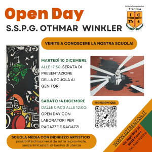 Sabato 14 dicembre dalle 9.00 alle 12.00 open day con laboratori per ragazze e ragazzi e presentazione della scuola ai genitori. Per partecipare si prega di iscriversi a questo link.
