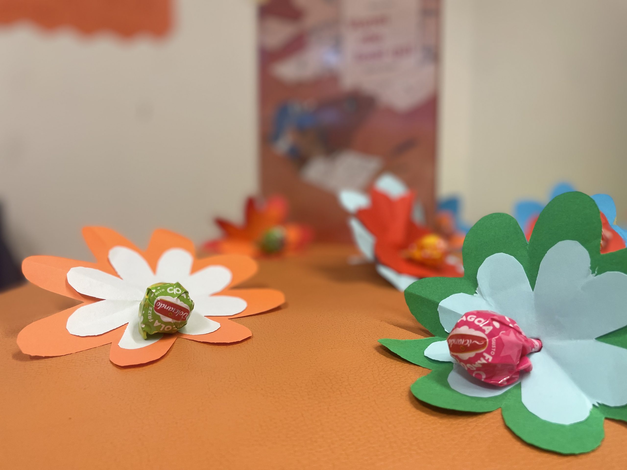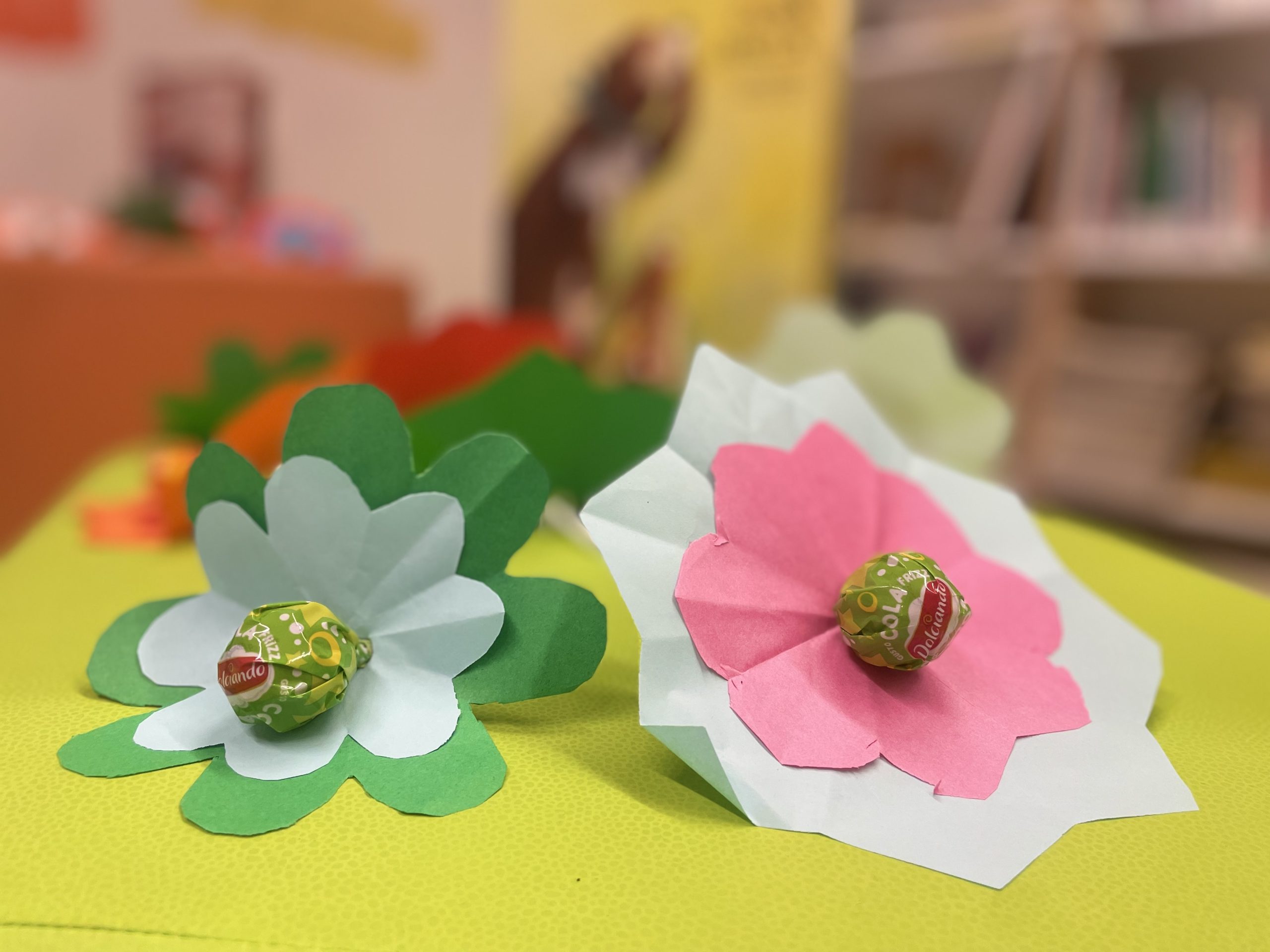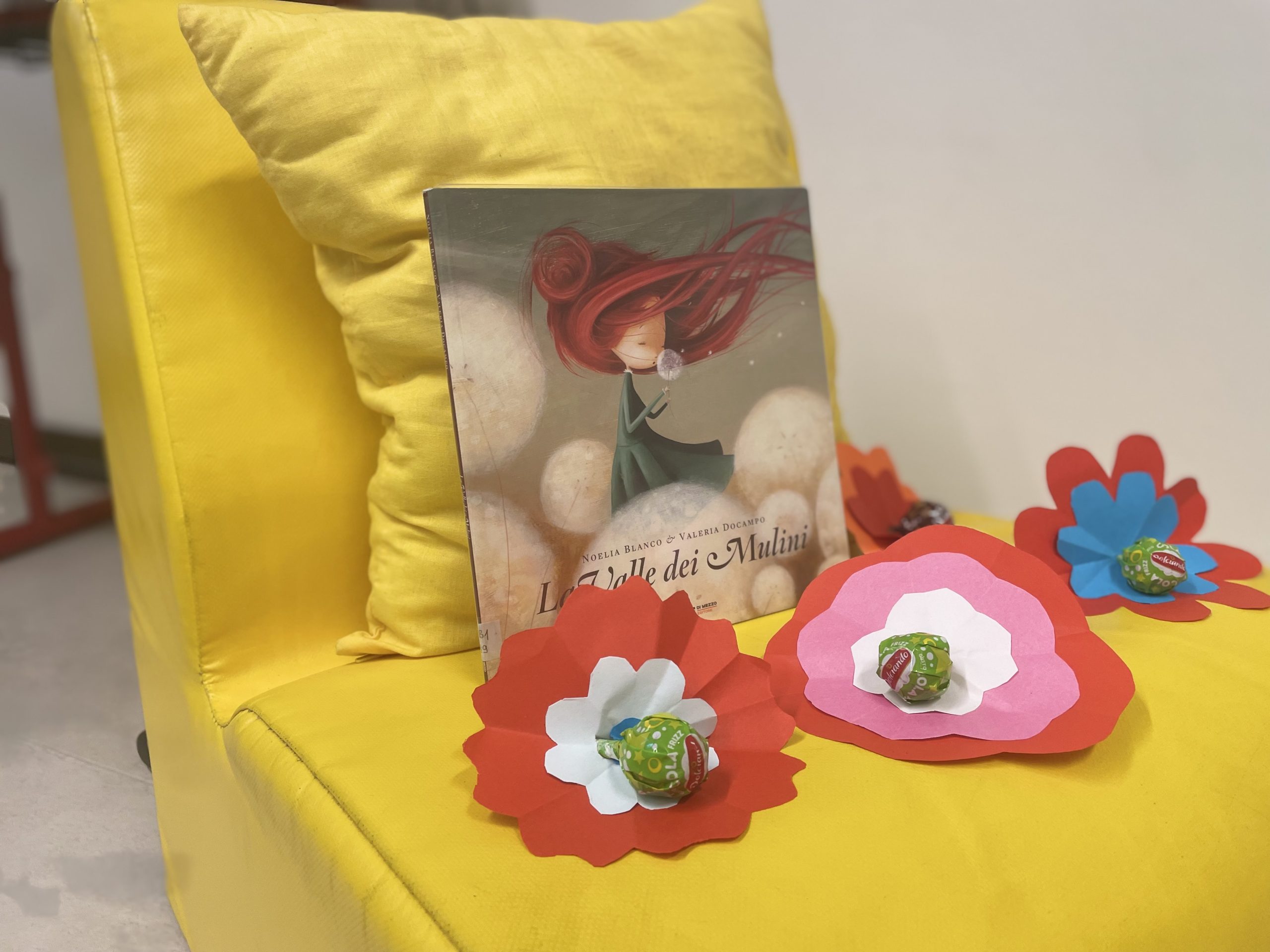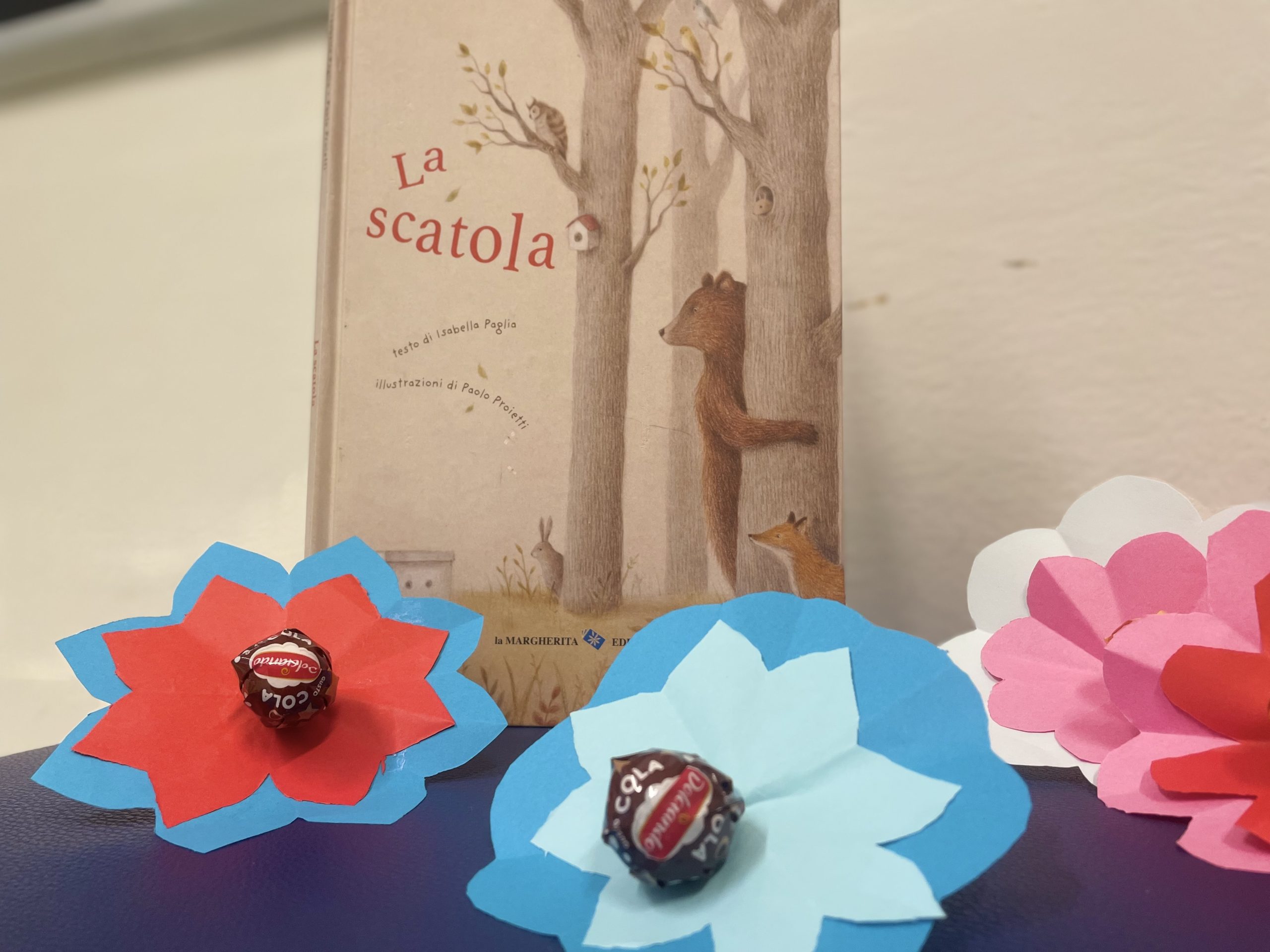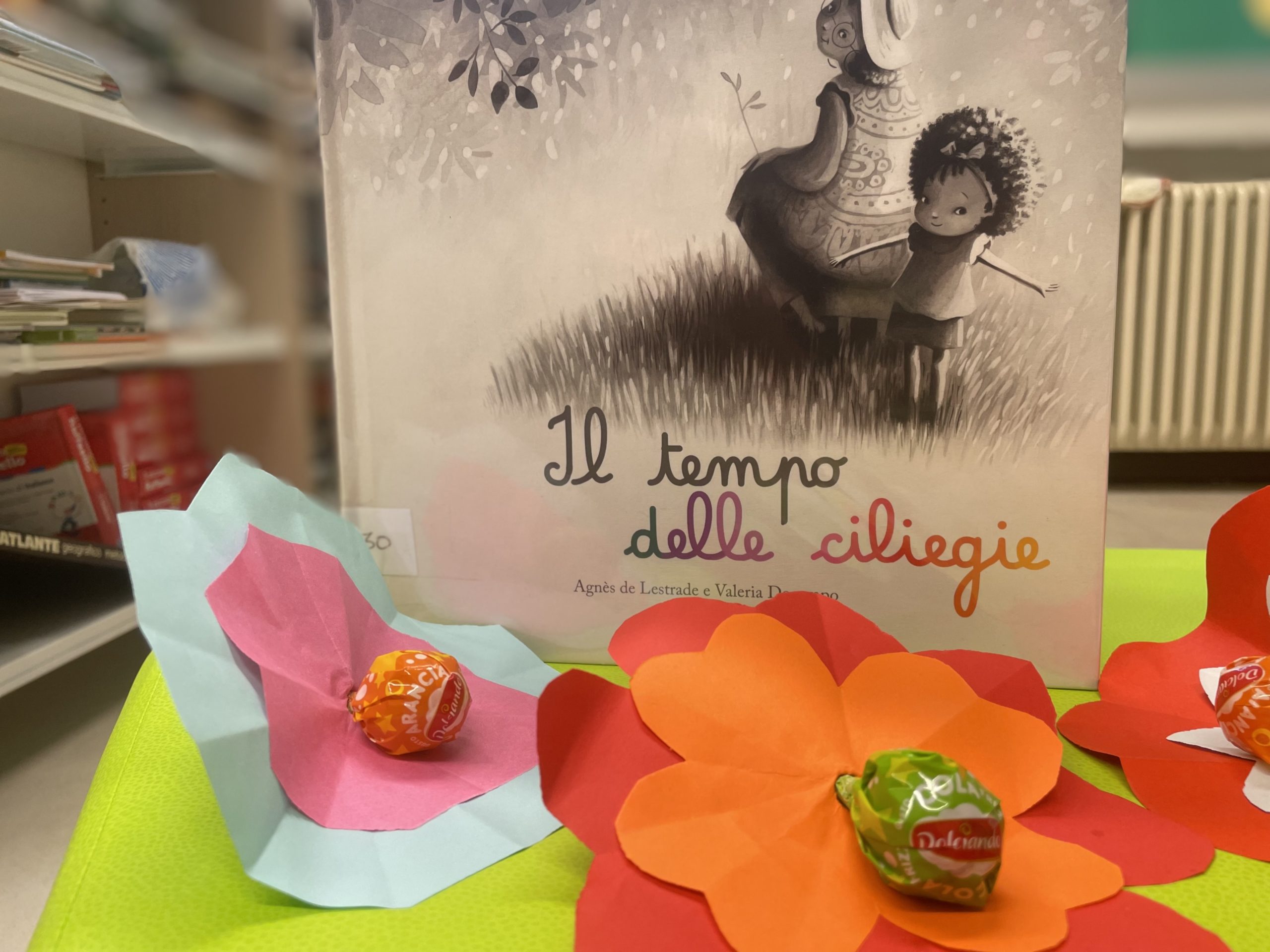 L’ultima tappa li ha condotti in biblioteca, un angolo accogliente e tranquillo dove ad attenderli c’erano alcuni albi illustrati da leggere insieme e un dolcissimo regalo: un lecca lecca a forma di fiore, preparato con cura e creatività dai bambini della scuola primaria.